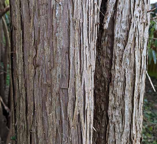 | Bark: | Reddish-brown, shreds and peels in strips. |