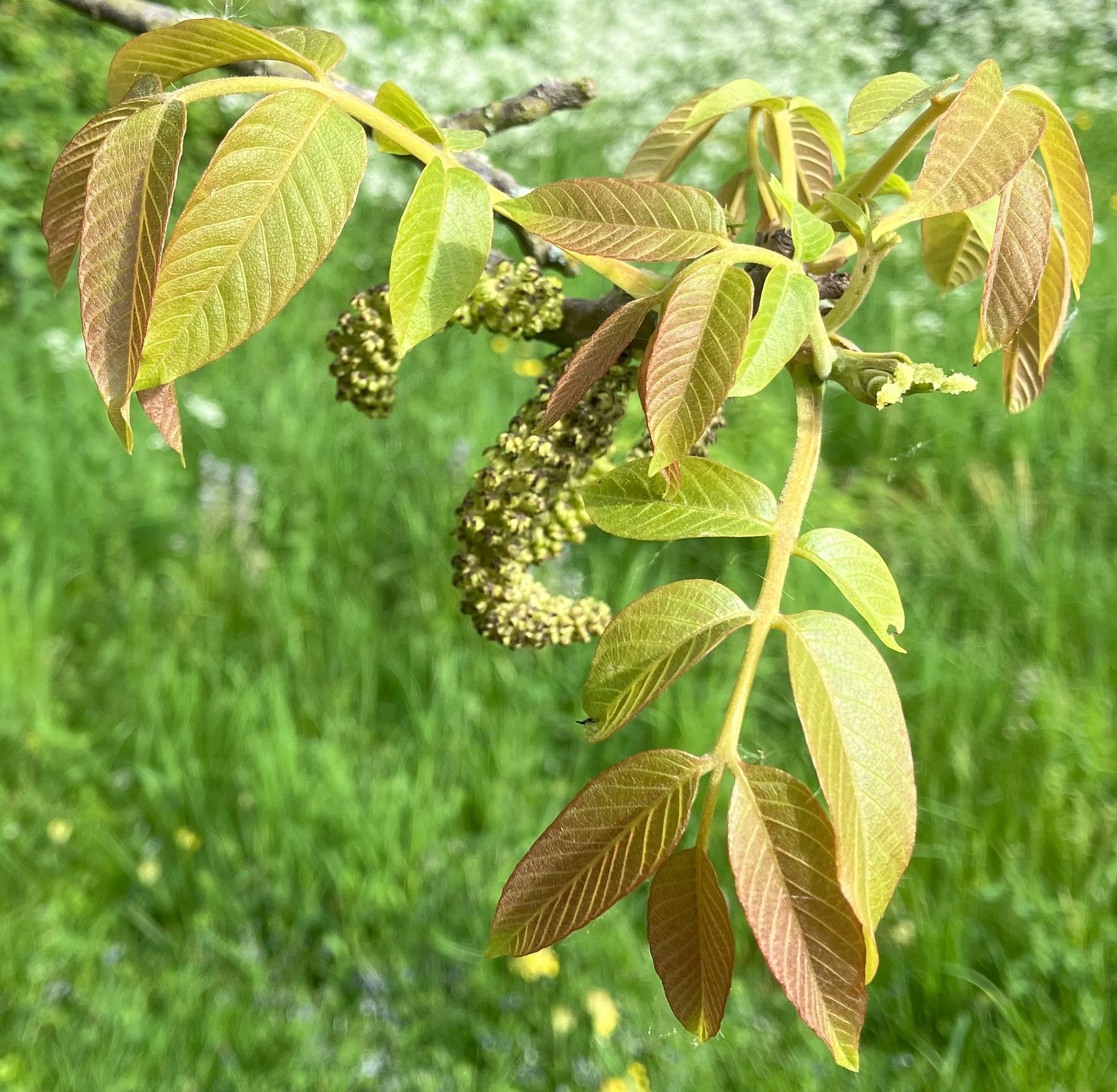 | Anecdotes and Comments: | Crushed leaves smell like polish Can be confused with Black walnut (Juglans nigra). Common walnut has fewer leaflets and its leaflets are more oval in shape and have smooth, un-toothed edges. Other specimens, of this tree in the Arboretum are #85 at D12 and #A3 at N4 The English walnut is susceptible to fungal diseases, as well as walnut blight which causes small black spots on the leaflets and can lead to die-back of new shoots and damaged fruit. Walnut-leaf blotch can cause leaves to fall prematurely but doesn’t cause lasting damage to the tree. |