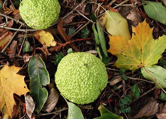 | Fruit: | Bright green fruit develops into knobbly spheres the size of a tennis ball. The sap contained is like PVA glue and the smell is of old fish as it ages. It is difficult to remove from the skin. |