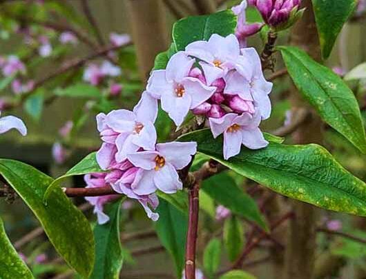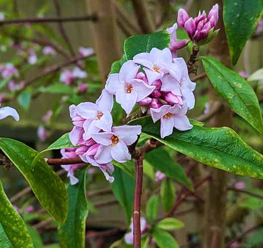 Daphne bholua grows at altitudes between 5,000 and 12,000 ft in Nepal and southern China. This cultivar was raised at a much lower altitude. In 1982 it arose as a chance seedling found at Hillier nursery, in Romsey, by Alan Postill and named after his wife, It was micro propagated at first and because it was then widely available it became an overnight success. It was then the only evergreen Daphne to flower early.