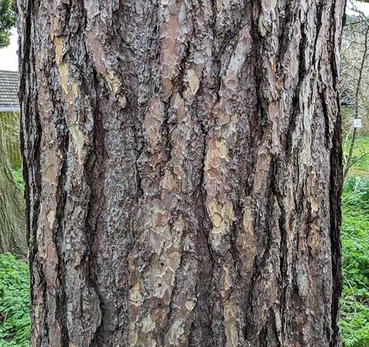 Bark:Gray to yellow-brown, and is widely split by flaking fissures into scaly plates, becoming increasingly fissured with age.